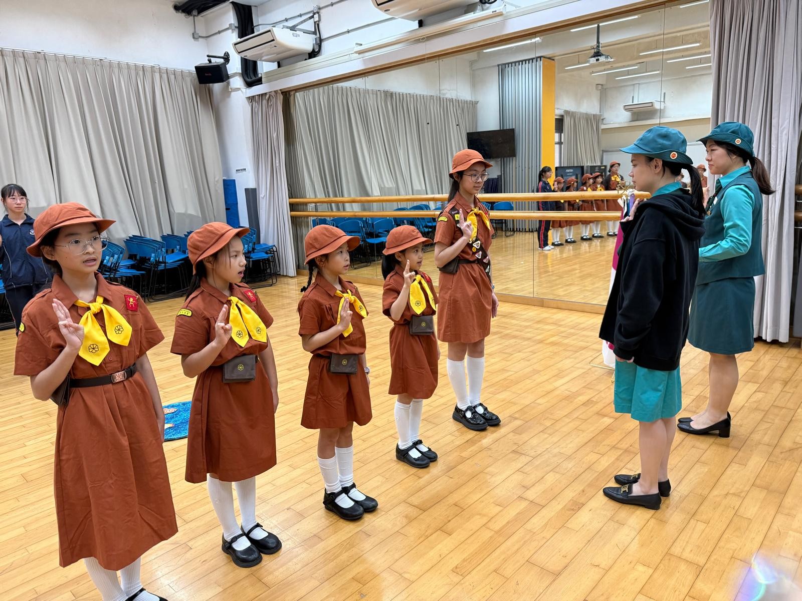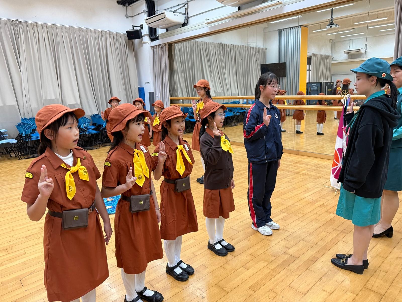 本年度本校小女童軍隊有14位三年級學生加入成為新隊員。女童軍總會領袖─秦嘉瑩,以及兩位教師領袖─孫惠老師、張曉蕾老師,於2026年1月30日,帶領新隊員進行宣誓儀式,同時六年級原有隊員亦正式成為隊長及隊副。